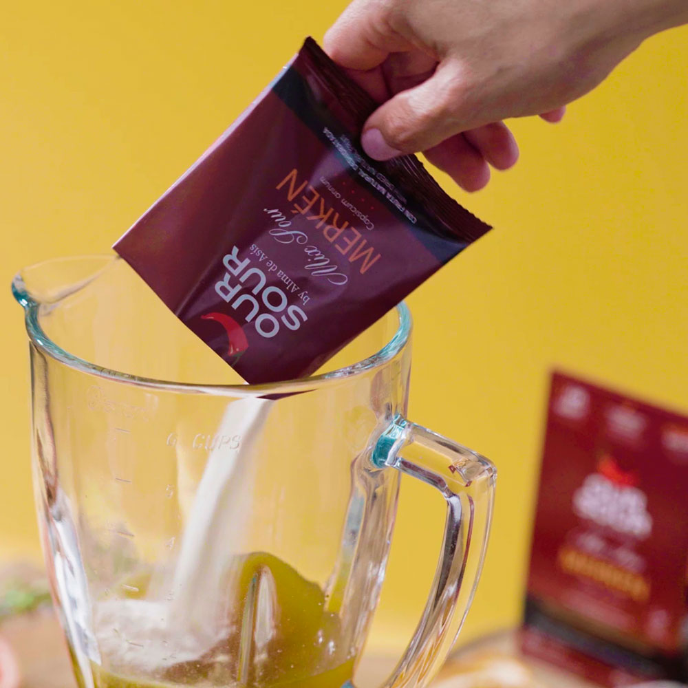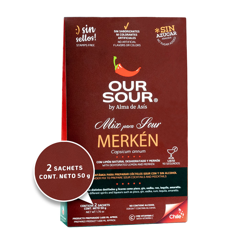 Cada Our Sour Merkén te permite preparar cócteles con sabor real a limón y un toque auténtico de merkén: el ají ahumado típico del sur de Chile.